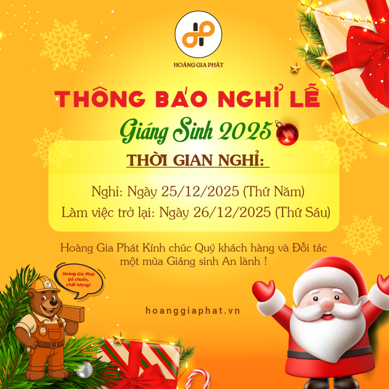Công ty Hoàng Gia Phát xin thông báo đến Quý khách hàng, đối tác lịch nghỉ lễ Giáng sinh 2025 cụ thể như sau: