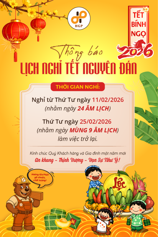 Hoàng Gia Phát xin thông báo đến Quý khách hàng lịch nghỉ Tết Bính Ngọ 2026 như sau: